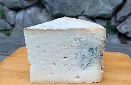 ─ De textura cremosa y fina corteza natural, presenta una pasta color marfil con sutil veteado azul verdoso.